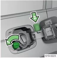und abnehmen.Der AdBlue-Tank ist voll, wenn die Zapfpistole abschaltet bzw. sobald kein AdBlue mehr aus der Nachfüllflasche fließt Nicht weiter nachfüllen.