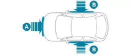 Elektronische Sensoren registrieren und analysieren die frontalen oder seitlichen Aufprallkräfte in den Aufprallerfassungsbereichen: