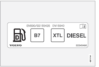 Diese Kennzeichnung gilt derzeit für Standardkraftstoff in Europa. Fahrzeuge mit Dieselmotor dürfen mit Dieselkraftstoff betankt werden, der wie folgt gekennzeichnet ist:
