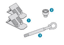Im rechten Kasten befinden sich die Radkeile und die Abschleppöse.