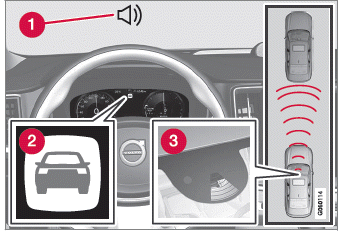 Zunächst wird der Fahrer vor einem nahe bevorstehendem Aufprall gewarnt.