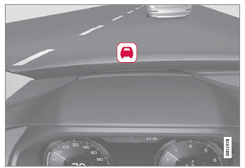 Ist das Fahrzeug mit einem Head-up-Display ausgestattet, wird die Warnung in der Windschutzscheibe mit einem blinkenden Symbol angezeigt.