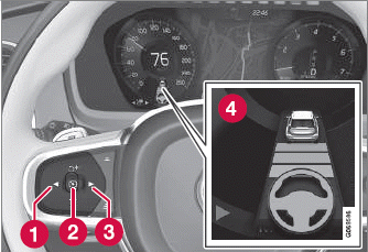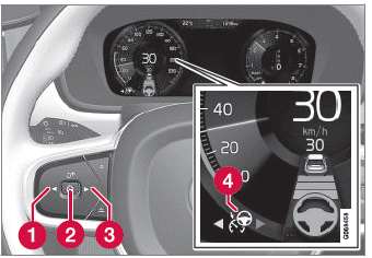 Im Bereitschaftsmodus ist die Funktion auf dem Fahrerdisplay ausgewählt, aber nicht aktiviert. In diesem Fall erfolgt keine Geschwindigkeits- oder Abstandsregelung und keine Lenkunterstützung durch Pilot Assist.