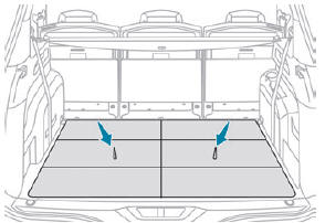 Wenn die Sitze der dritten Sitzreihe hochgeklappt sind, können diese Faltböden entweder aufrecht gestellt werden oder flach hinter den Sitzen verbleiben (was das Sitzstaufach freigibt und somit eine zusätzliche Ablagemöglichkeit bietet).