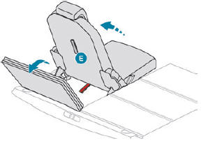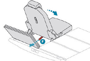Halten Sie Lasche F beim Verstauen des Sitzes nicht fest. Sie könnten sich die Finger einklemmen!
