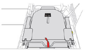 Stellen Sie sicher, dass die vorderen Haken des Sitzes korrekt an den zwei Ösen befestigt sind.