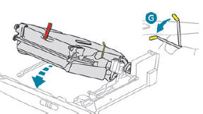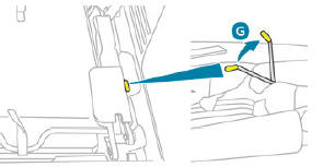 Der gelbe Hebel G klappt automatisch zurück.