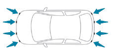 Mithilfe der Sensoren im Stoßfänger erkennt und signalisiert dieses System die Nähe zu einem Hindernis (z. B. Fußgänger, Fahrzeug, Baum, Schranke).