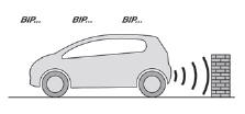 Der Abstand wird durch ein unterbrochenes akustisches Signal angegeben, das in immer schnellerer Folge ertönt, je mehr sich das Fahrzeug dem Hindernis nähert.