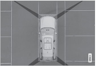 Die Einparkhilfekameras (PAC) können eine zusammengesetzte 360º-Rundumsicht sowie eine separate Ansicht für jede der vier Kameras anzeigen: Heckansicht, Frontansicht, Ansicht linke Seite, Ansicht rechte Seite.