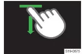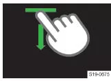 Infotainment-Bedienungszentrumöffnen,indem die Leisteim oberen Bildschirmbereichgedrückt gehaltenund nach untengezogen wird.