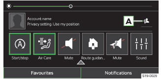 Infotainment-Bedienungszentrumöffnen,indem die Leisteim oberen Bildschirmbereichgedrückt gehaltenund nach untengezogen wird.