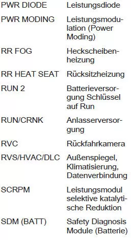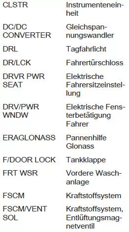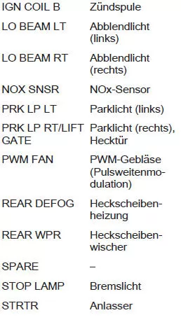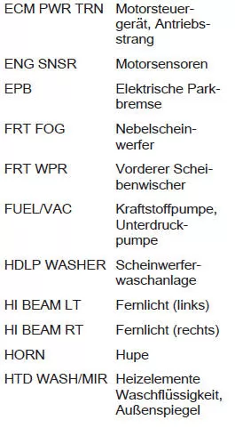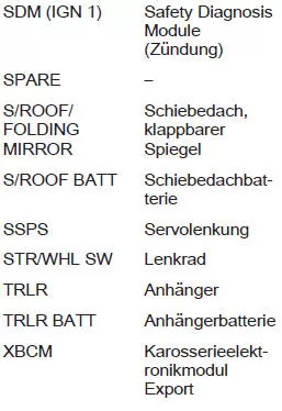 Einige Funktionen können durch mehrere Sicherungen abgesichert sein. Sicherungen können auch ohne Vorhandensein einer Funktion eingesteckt sein.