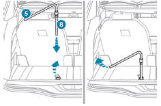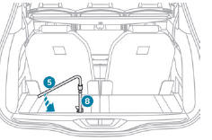 Es muss flach auf dem Boden des Kofferraums verstaut werden (benutzen Sie eine Abdeckung, um das Innere des Kofferraums zu schützen).