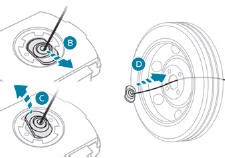 Setzen Sie beim Montieren des Rades die Radkappe beginnend am Ventildurchgang wieder auf und drücken Sie sie rundum mit der flachen Hand fest.