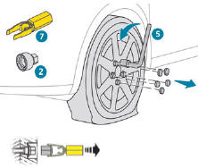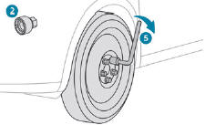 Ziehen Sie beim Abmontieren des Rades vorher die Radkappe mithilfe des Radschlüssels am Ventildurchgang ab.