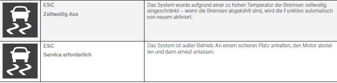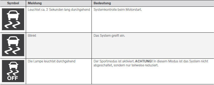 Symbole und Meldungen zur Fahrdynamikregelung