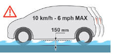 Bremsen Sie beim Verlassen der überschwemmten Straße mehrmals hintereinander leicht ab, sobald es die Sicherheitsbedingungen erlauben, um die Bremsscheiben und Bremsklötze zu trocknen.