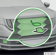 Auf die Abdeckkappedrücken und diese abnehmen.Abschleppöse einbauen