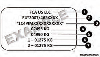HINWEIS: Für bestimmte Märkte kann das Etikett anders sein; Abbildung: zulässiges Gesamtgewicht, zulässige Achslast vorn und hinten.