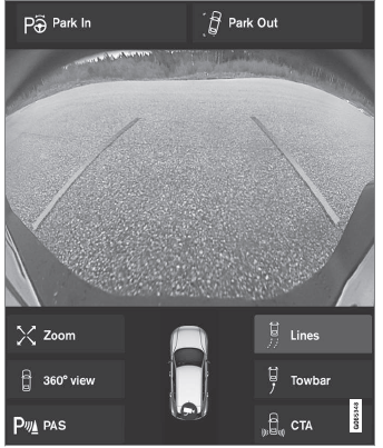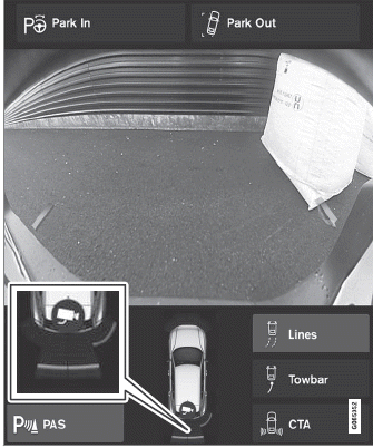 Die Einparkhilfekamera (PAC) wird automatisch beim Einlegen des Rückwärtsgangs oder manuell über die Ansicht Funktionen auf dem Center Display aktiviert.
