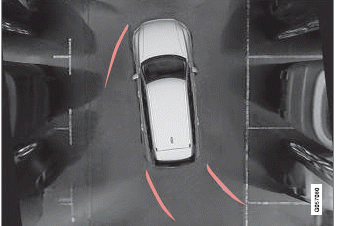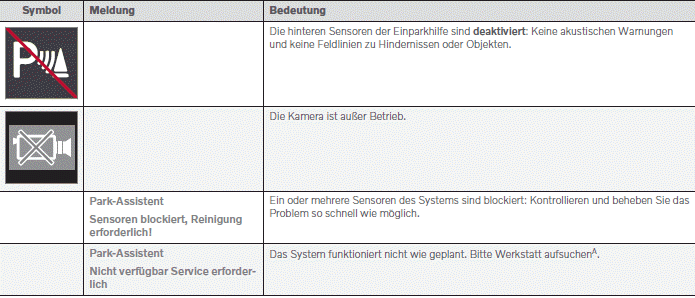 Die Warnsignale hängen vom theoretischen Fahrweg des Fahrzeugs ab. Bei vollem Lenkradeinschlag kann auch vor einem Hindernis gewarnt werden, das sich schräg vor oder hinter dem Fahrzeug befindet.