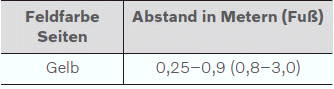 Die Farbe der Seitenfelder wechselt mit kleiner werdendem Abstand zum Hindernis von GELB zu ROT.