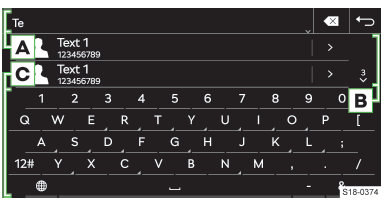 Die Tastatur wird automatisch angezeigt, wenn das Infotainment zur Eingabe von Zeichen auffordert.
