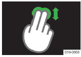Die Gestensteuerungerfolgt, indem dieHand ungefähr 8 cmüber der unteren Bildschirmkantelangsamhin und her bewegtwird.Einstellungsabhängig kann eine erkannte Geste akustisch und animiert bestätigt werden.