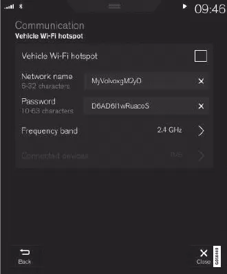 2. Tippen Sie auf Kommunikation → Fahrzeug Wi-Fi-Hotspot.