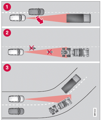 Die Kamera- und Radareinheit unterliegt bestimmten Begrenzungen, die sich auch auf die verwendeten Funktionen auswirken. Sie als Fahrer sollten sich z. B. der folgenden Begrenzungen bewusst sein.