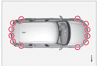 ACHTUNG Schmutz, Eis und Schnee auf den Sensoren können ein Grund für falsche Warnsignale, eingeschränkte oder ausgebliebene Funktionen sein.