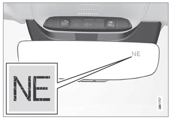 In die obere rechte Ecke des Rückspiegels ist ein Display integriert, das die Himmelsrichtung auf dem Kompass angibt, in welche die Vorderseite des Fahrzeugs zeigt.