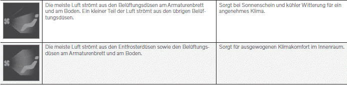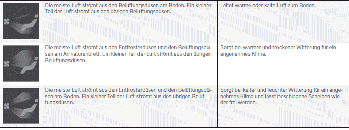 Bei Bedarf können Sie die Luftverteilung manuell ändern. Dabei sind folgende Einstellungen möglich.