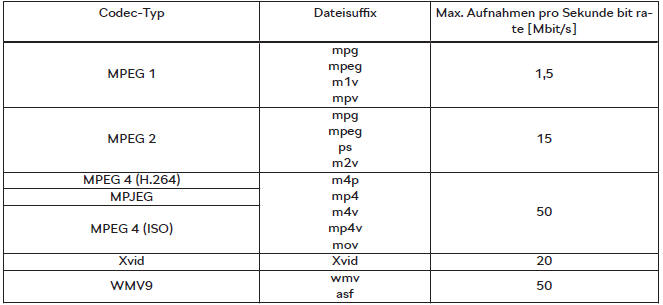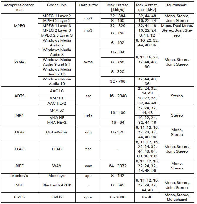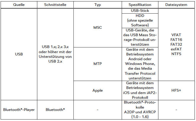 Dateien, die über das DRM- und iTunes-Verfahren geschützt sind, werden vom Infotainment nicht unterstützt.