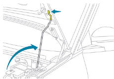 Die Motorhaube wird über einen Hebel im Innenraum entriegelt und anschließend durch Anheben des Sicherheitsbügels geöffnet.