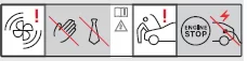 Wenn der Motor heiß ist, seien Sie vorsichtig, wenn Sie den Hebel außen und die Motorhaubenstütze bedienen (Verbrennungsgefahr); unter Verwendung des geschützten Bereiches.