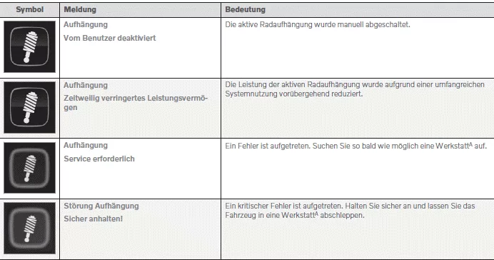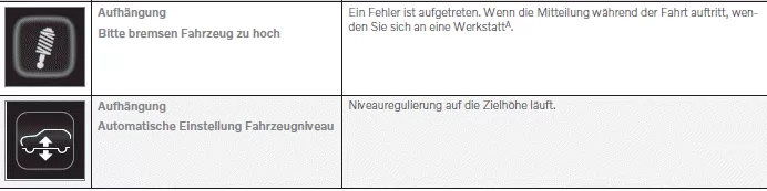Wenn ein Problem mit der Niveauregelung auftritt, wird eine Meldung auf dem Fahrerdisplay angezeigt.