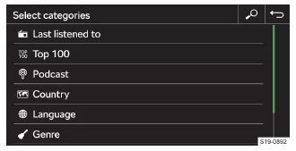 - FM/DAB - in der Liste werden verfügbare FM- undDAB-Sender angezeigt.