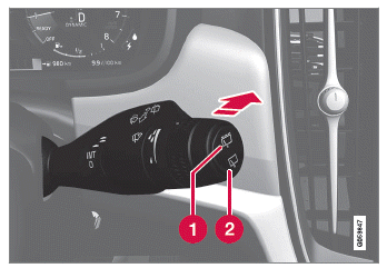 Waschfunktion, rechter Lenkradhebel.