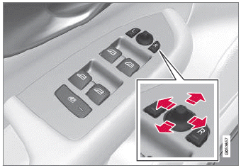 Die Stellung der Außenrückspiegel wird mit dem Einstellhebel im Bedienfeld der Fahrertür eingestellt. Es muss mindestens Zündstellung I aktiviert sein.