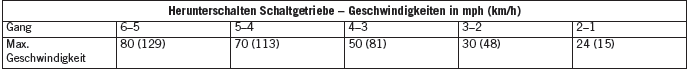 Empfohlene Höchstgeschwindigkeiten beim Herunterschalten