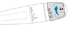 Wenn der Frontscheibenwischer beim Einlegen des Rückwärtsgangs in Betrieb ist, schaltet sich automatisch auch der Heckscheibenwischer ein.