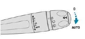Nach jedem Ausschalten der Zündung für mehr als eine Minute muss die Wischautomatik reaktiviert werden, indem der Schalter kurz nach unten gedrückt wird.