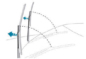 Die Wartungsstellung eignet sich zum Reinigen und Austauschen der Wischerblätter. Außerdem können die Wischerblätter in dieser Position bei winterlicher Witterung (Eis, Schnee) von der Windschutzscheibe abgehoben werden.