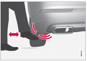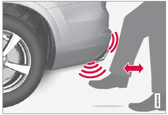 Um das Öffnen oder Schließen mithilfe einer Fußbewegung an Fahrzeugen zu aktivieren, die mit einer Schutzplatte ausgerüstet sind, erfolgt die Bewegung von der Seite des Fahrzeugs aus. Einer der Transponderschlüssel des Fahrzeugs muss sich in Reichweite (ca. 1 Meter (3 Fuß) ) befinden, damit das Öffnen und Schließen möglich ist.