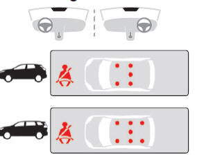 Die Kontrollleuchte auf dem Kombiinstrument und die Kontrollleuchten auf der Anzeige für Beifahrer- Front-Airbag und Sicherheitsgurte leuchten rot auf, wenn das System feststellt, dass einer der Sicherheitsgurte nicht angelegt oder gelöst wurde.