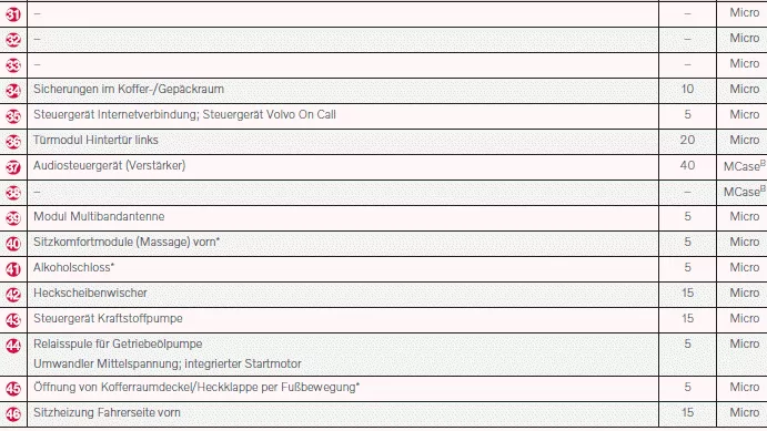 WARNUNG Wenden Sie sich bei Problemen mit den nicht in der Betriebsanleitung aufgeführten Sicherungen an eine Volvo-Vertragswerkstatt.