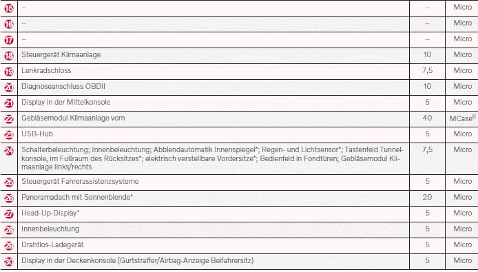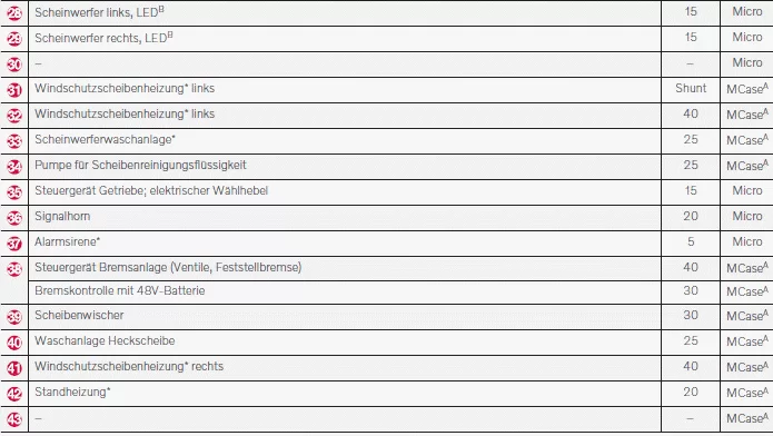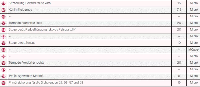 Ist ein elektrisches Bauteil oder eine Funktion ausgefallen, kann dies darauf zurückzuführen sein, dass die entsprechende Sicherung kurzzeitig überlastet war und durchgebrannt ist.