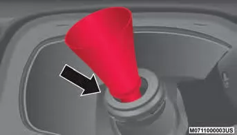 5. Führen Sie den Schraubendreher oder ein ähnliches Werkzeug in die Zugangsöffnung des Gangschalters ein (in der rechten vorderen Ecke der Gangschalters).